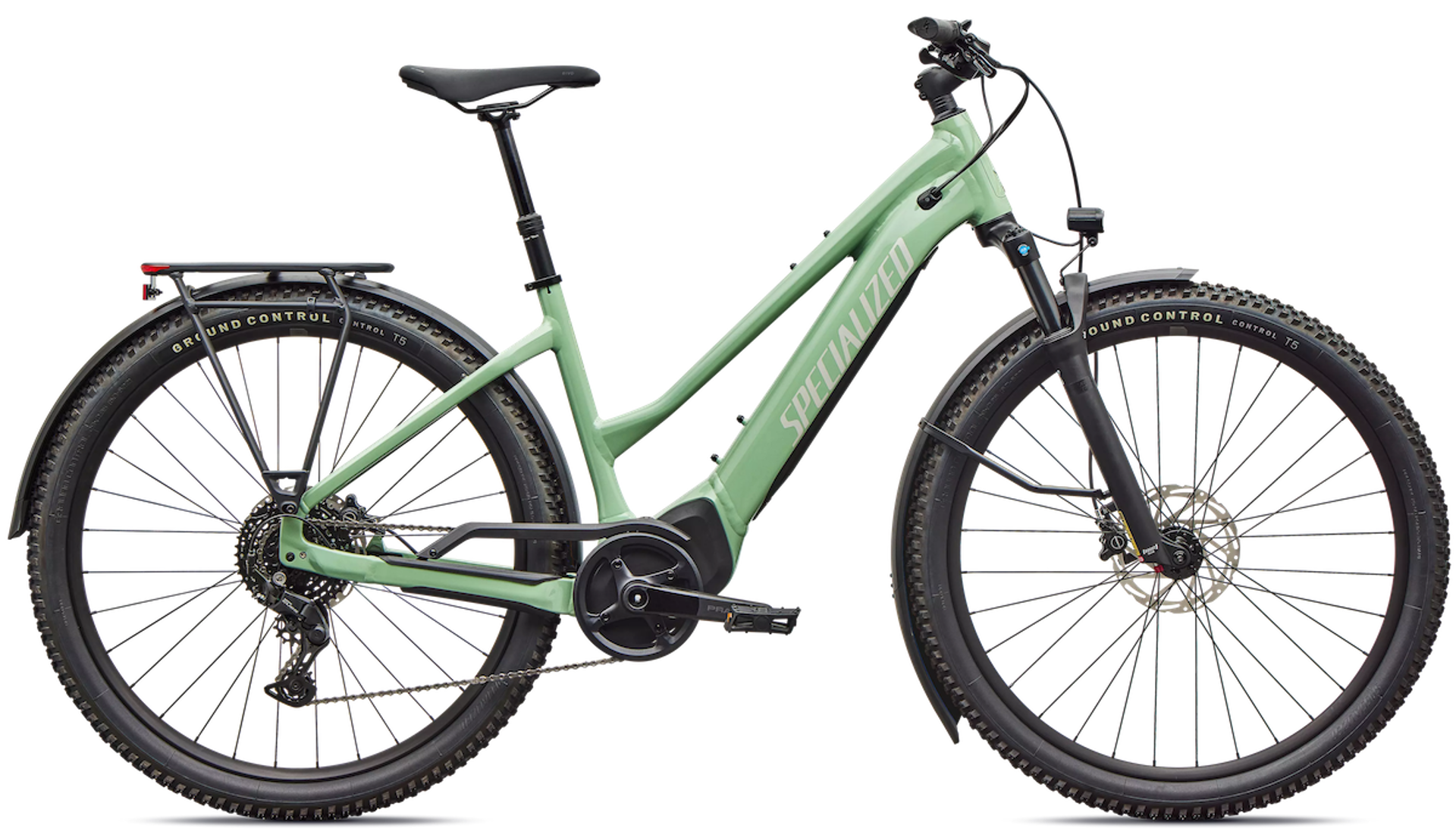 E5 Aluminum, mid-drive motor, fully integrated & lockable downtube battery, internal cable routing, wheel lock mount, and front rack compatible