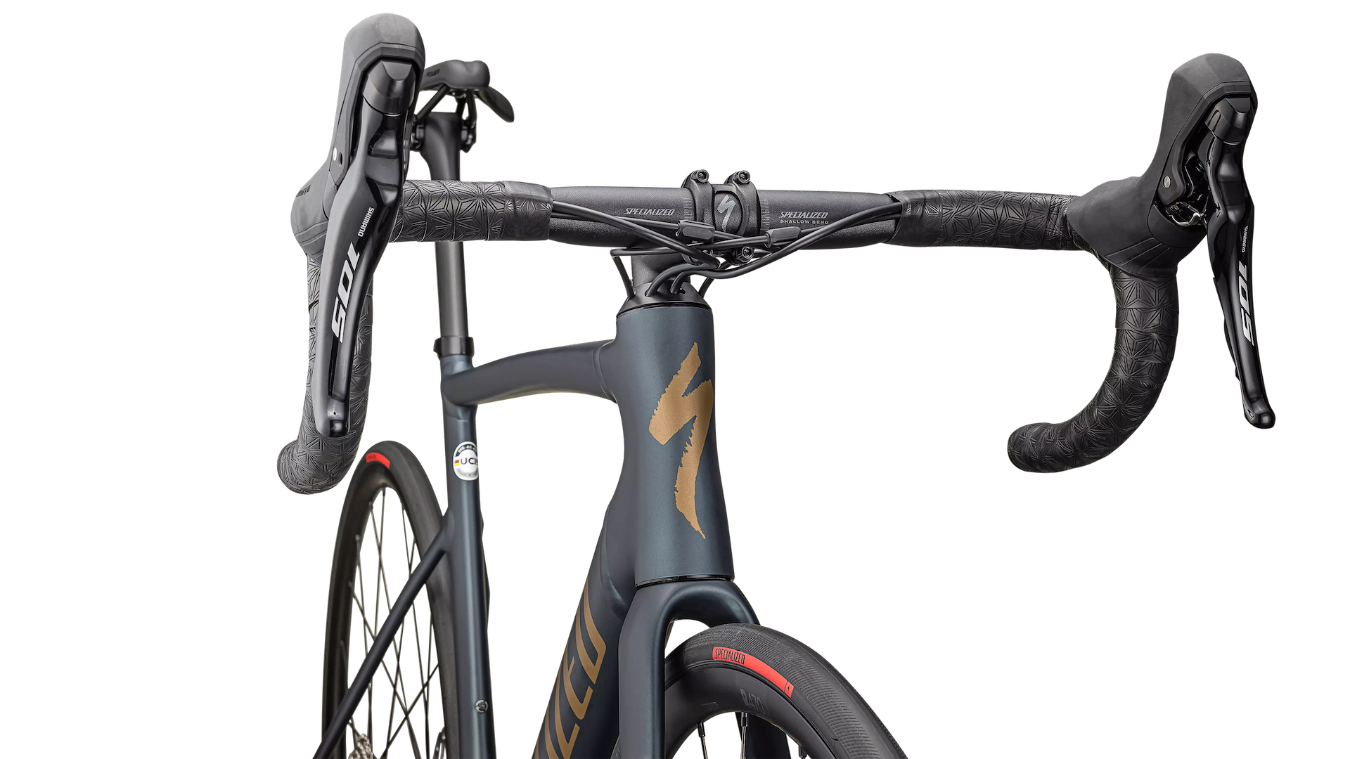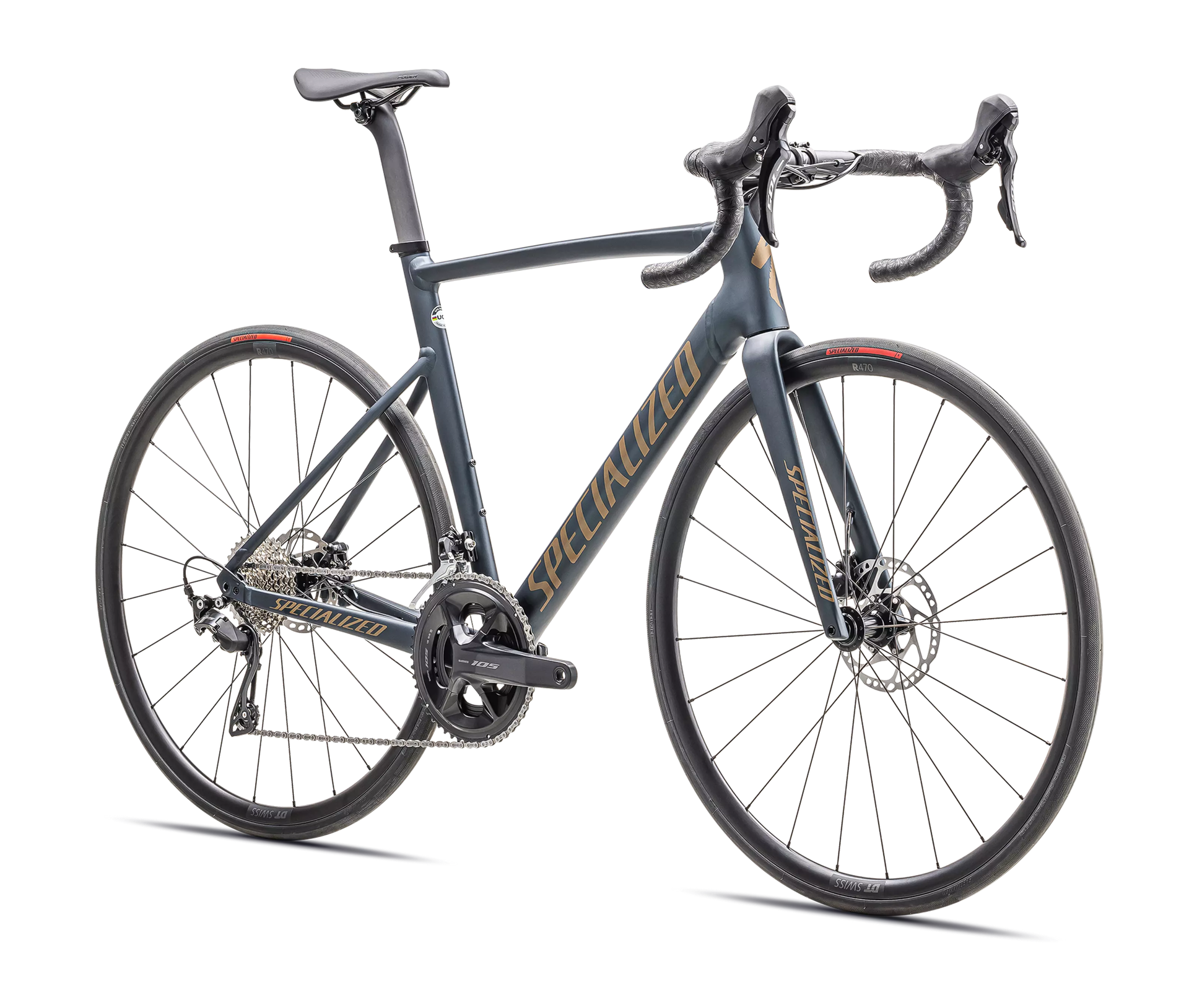 Specialized E5 Premium Aluminum Disc frame with D'Aluisio Smartweld Sprint Technology, hydroformed aluminum tubing, tapered head tube, fully internally routed cables, threaded BB
